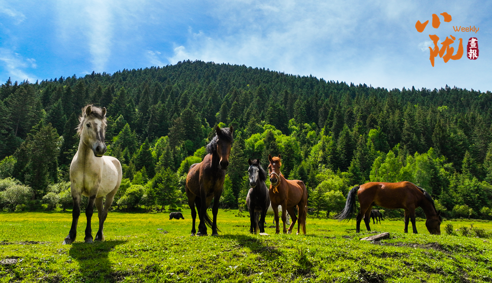 云朵洁白如雪,碧绿的草甸上繁花似锦,散发着淡淡的清香,引得蜜蜂和蝴蝶翩翩起舞。成群的牦牛与骏马悠然自得地啃食着青草,牧民的帐篷点缀其间,炊烟袅袅升起,勾勒出一幅宁静祥和的牧居生活图景。