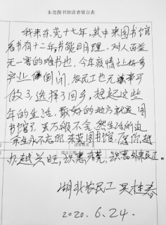 吴桂春给东莞图书馆的留言。