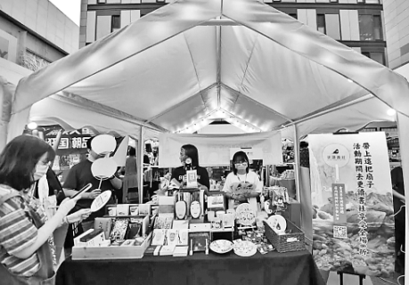 “国潮书市”上,更读书社摊位展示的图书、文创产品吸引读者驻足。