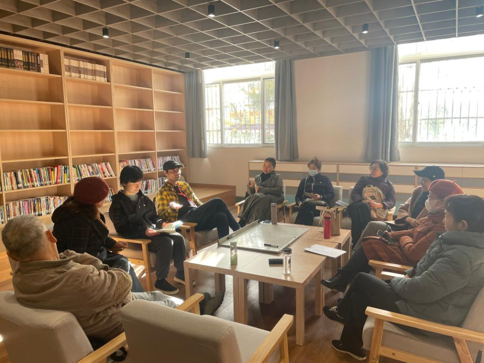 老人们在安徽省图书馆里举办“英语沙龙”。(受访对象供图)