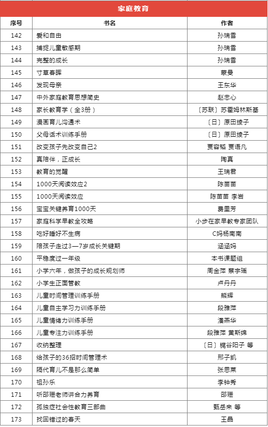 推荐书目种类繁多,分为前沿科技、基础学科启蒙、自然科学、家庭教育等十个类别,共计173本(套)。