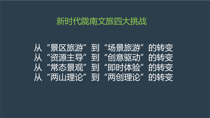 作为具备后发优势的陇南,在推进文旅康养产业发展的过程中,我们必须认识和应对这四大转变或调整,“谋定而动”,否则,如果我们还以传统的方式追求建设景区,有可能做出来的大项目,是过时的,过期的,是被当下的旅游消费者所遗弃的。